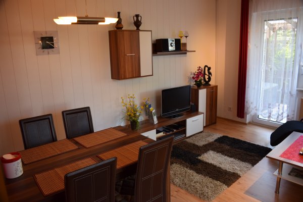 Die Wohnung wurde 2012 neu renoviert und eingerichtet. Seit August wird die Maisonetten- Haushälfte nun als Ferienwohnung vermietet. Sie besitzt einen separaten Eingang, eine eigene Zufahrt mit Abstellfläche für Autos und bei Bedarf Wohnanhänger, eine Terrasse mit Tischgruppe, Grill (u.v.a.). Hier können 2 Personen (Aufbettungen möglich - siehe Leistungsbeschreibung) bereits ab einer Nacht ihren Urlaub genießen. So ist das Haus auch für Radtouristen für einen Zwischenstopp geeignet. Unterstellmöglichkeiten für mitgebrachte Räder gibt es in einer verschlossenen Garage oder direkt am Haus neben der Terrasse in einem Fahrradständer. Bei Bedarf können zwei Fahrräder kostenfrei genutzt werden. |
